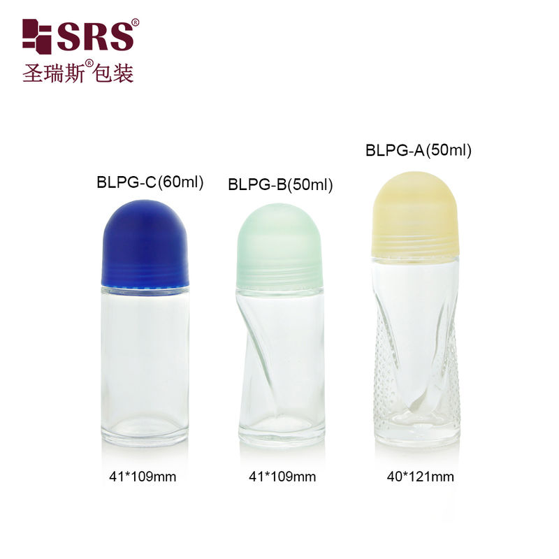 BLPG Botella de vidrio vacía con forma única de 50 ml y 60 ml para envasado de gel desodorante corporal y antitranspirante